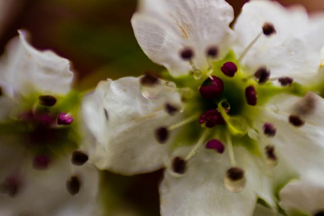 I wrote about my cherry blossoms on Saturday. Today, I’m using one of the images to made Saturday. I played with my Lensbaby Composer Pro and Sweet 35 optic and a set of extension tubes to try for some macro photography. Let me tell you, it is sometimes much harder than it seems. There was a light breeze that kept shaking the tree branches. I knew that shooting wide open (2.8 on the Sweet 35) would allow me to use a fast shutter speed, which would minimize the shake. But I had to put the camera in the branches, and I kept bumping them. I finally resorted to hauling out the tripod. Even then I still had some problems getting close enough to the blossoms to make the image I wanted. I had hoped to get some images with the water drops from the rain that morning.