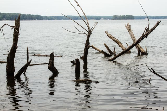 I took this picture two weeks ago while walking through Dreher Island State Park, just three or four miles from my home. These trees are covered in water most of the year and as a result have drowned. The graphic nature of them—the stark nearly black trunks and the more faded ones create some drama against the lake water. And then there are the reflections that are disrupted by the ripples created by the breeze. The water itself reflects the gray skies of that morning. Even after adjusting the white balance in post-production to account for the cloudy conditions, I could not eliminate the blue-gray quality of the light in the image.