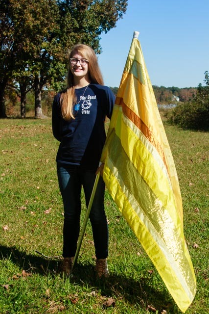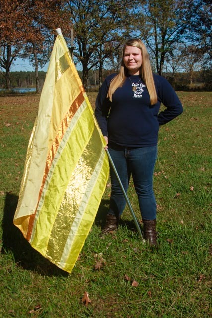 What made this a special shoot for me is that it brought back memories of my junior and senior years in high school when I was in the marching band color guard. Marching styles were completely different. In 1975 and 1976, we used a strict military marching style. The band marched into the stadium to full cadence (I miss hearing the various drum cadences. Drum taps are just not the same) in block formation. The concert number was played standing still; there was a separate percussion feature. And the color guard performed either band front or in the back. I was part of the honor guard the first year in the band. I carried one of the rifles at “right-shoulder arms.” Occasionally, we went to a port arms position.