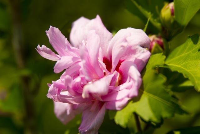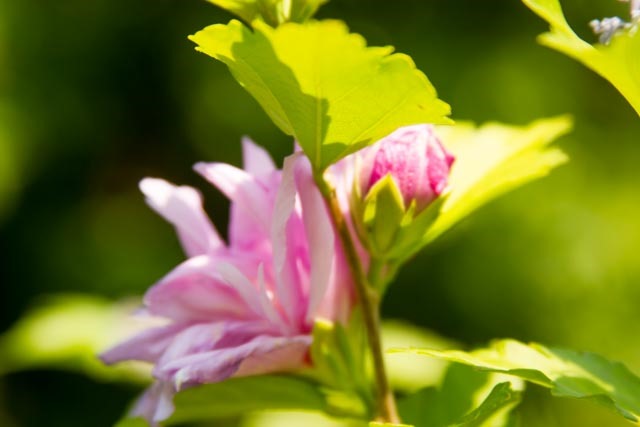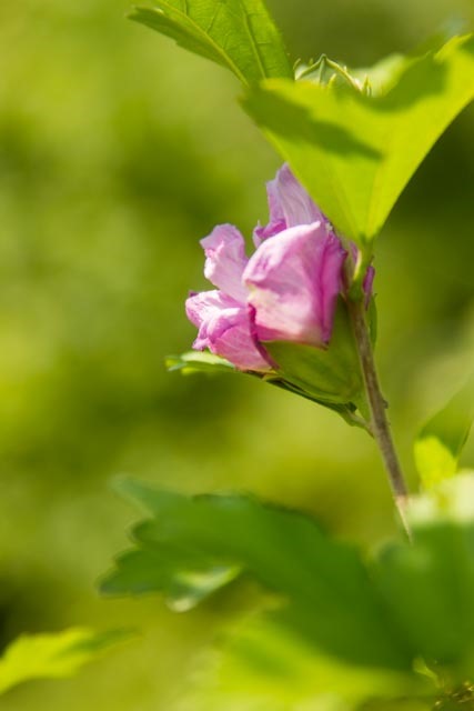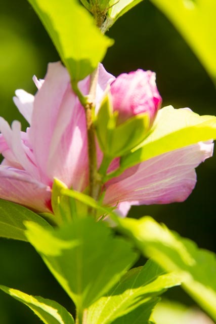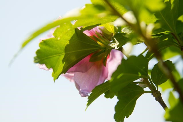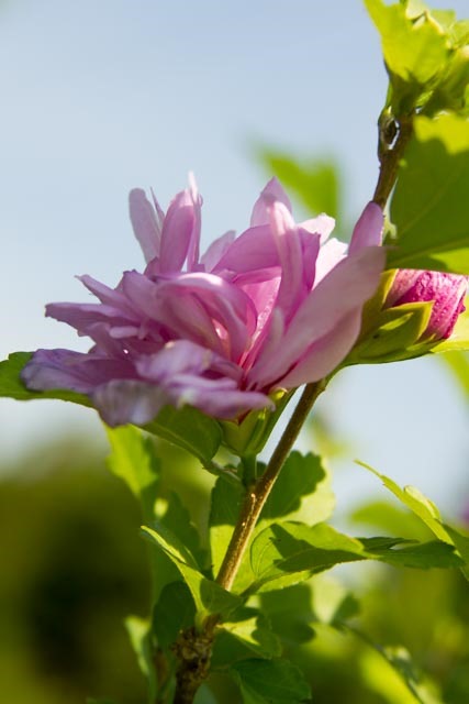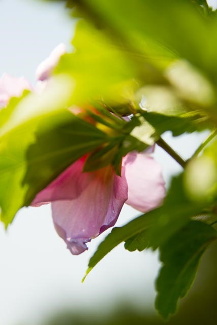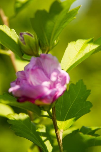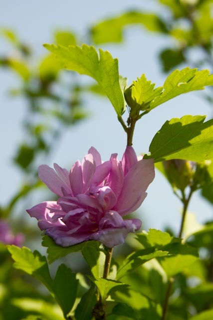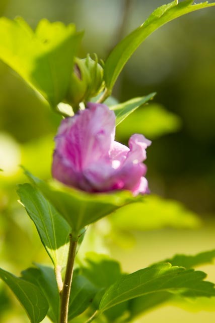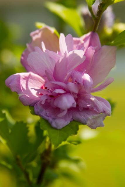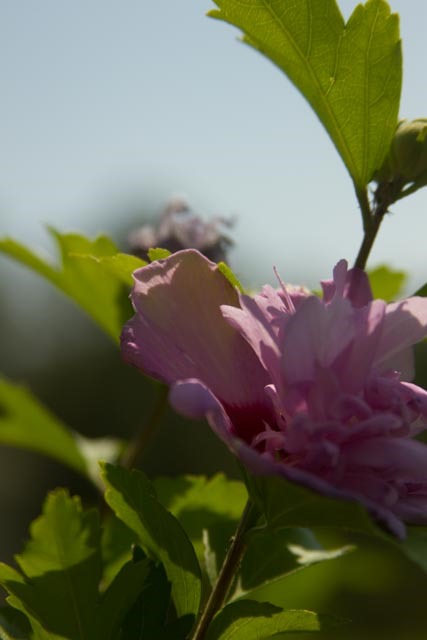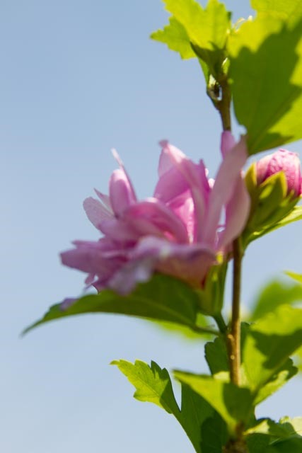 My subject is the Rose of Sharon tree in the front yard. It has more bloom on it this year than I can remember since we transplanted it four years ago. The tree is looking healthy again. I love the color and texture of the bloom, and for now, I am on “eye level” with some of the flowers.