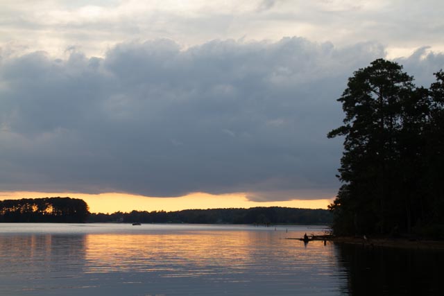 Another challenge I’m doing this week is Kim Klassen’s See the Sun challenge. The idea behind the class is to get out with the camera during the Golden Hours of sunrise and sunset (either/or or both) and capture the magical light of that time of day. Today was not ideal. It rained all morning, but cleared up for a while in the afternoon. I went for a walk about an hour or so before sunset. As I returned to the car to go to Sonic for supper, the sun was going down behind the clouds. I caught some of the reflections on the water of the lake.