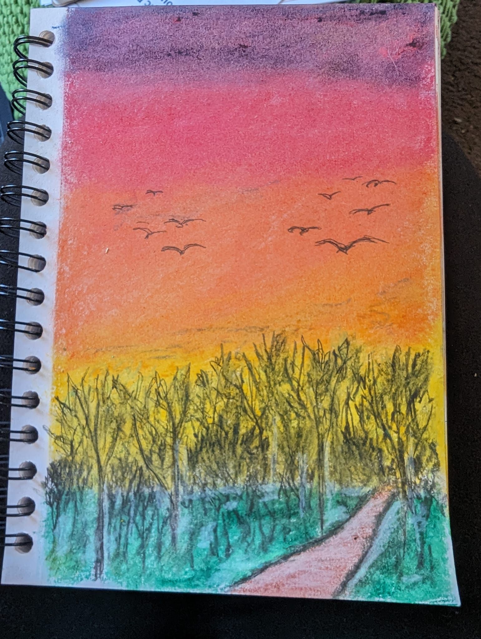 3. I am thankful for “restarts.” It is so easy to put things aside when “life” happens. I started sketching about twelve years ago after deciding that I would not let a comment made to me when I was an impressionable eight or nine years old keep me from doing something I wanted to do. With the encouragement of the art teacher in the school where I taught English, I picked up a sketchbook and some graphite pencils and began. Yesterday, I bought a new sketchbook, new pencils, some charcoal sticks, and oil pastels. I watched YouTube videos. Then I created.