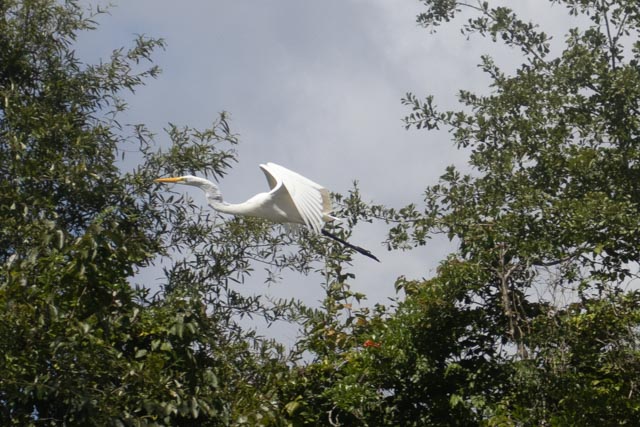The flash of white as the egret glided to a graceful landing at the far edge of the pond,