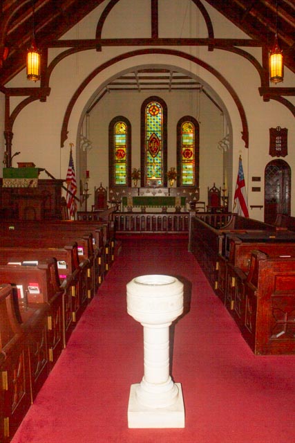 Water is one of the essentials of life. While at St. John in the Wilderness, I went into the sanctuary. The baptismal font is in the middle of the central aisle and filled with water. I dipped my fingers into that holy water and made the sign of the cross on my forehead, remembering my own baptism (or rather remembering that I was baptized as an infant). I stood there in silence.