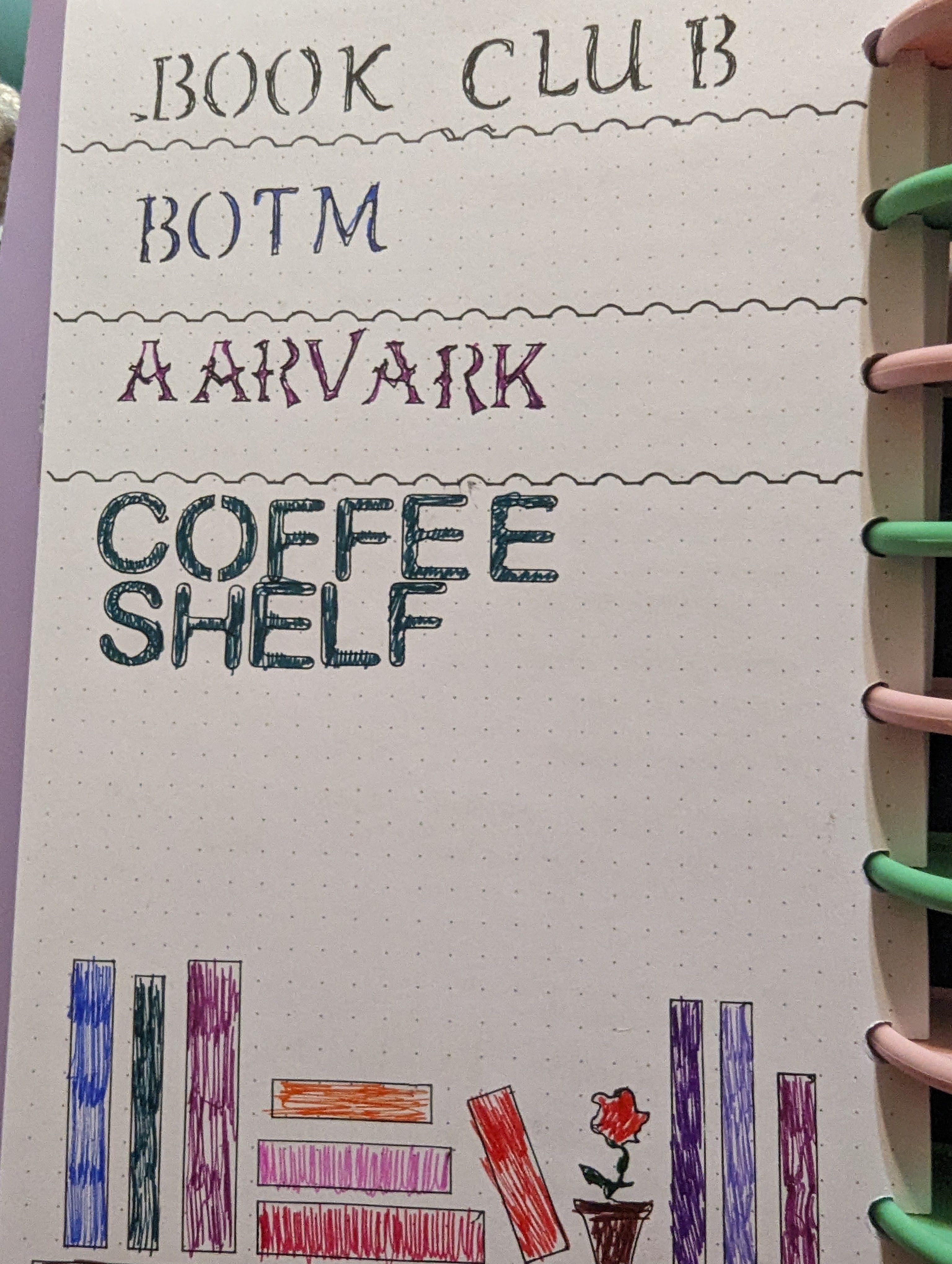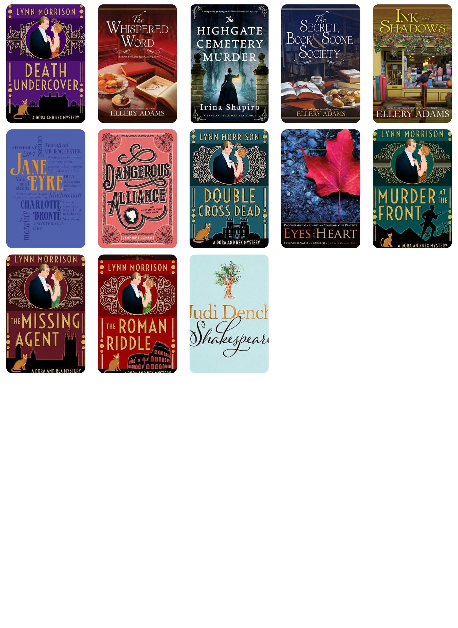 - Books read for three book clubs: The Book of the Month Club, Aardvark Book Club, and a local book club, “The Coffee Shelf Book Club” (I started it!)