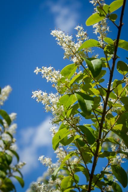 Yesterday, I saw a shrub of some sort waving its white branches at me. I had to fill the bird feeders anyway, so I grabbed the camera and went out for a quick photo shoot. After asking on Facebook for an identification, I found out that it is privet hedge. It is beautiful and smells heavenly. I started with this image: