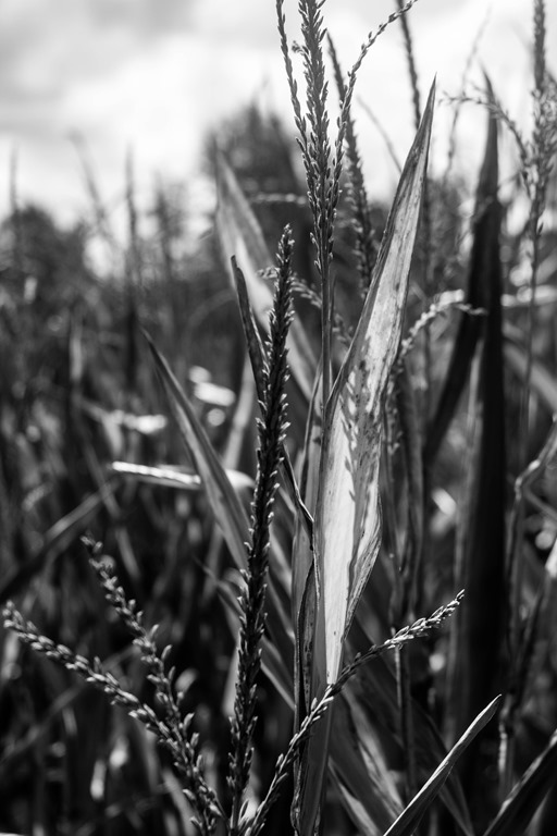 I took this image of the sun shining through the corn leaf at the beginning of the month. I used a luminosity mask in the blue channel, and lo! and behold! I found some detail in the sky! Oh, my goodness! The sky was pretty blown out when I started the editing process. And then I used the saturation slider to remove the color in Lightroom, the black and white sliders to set the points for pure black and pure white, and the highlights and shadows sliders to adjust for details. I really like the results. Just for fun, here is the original.