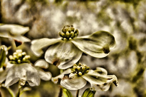 Last night, I played with some of those tools on images I took last weekend. And I played with layering textures and photo veils and other tools in my tool kit. I came up with this image of the dogwood. I think I like it. I like it very much.